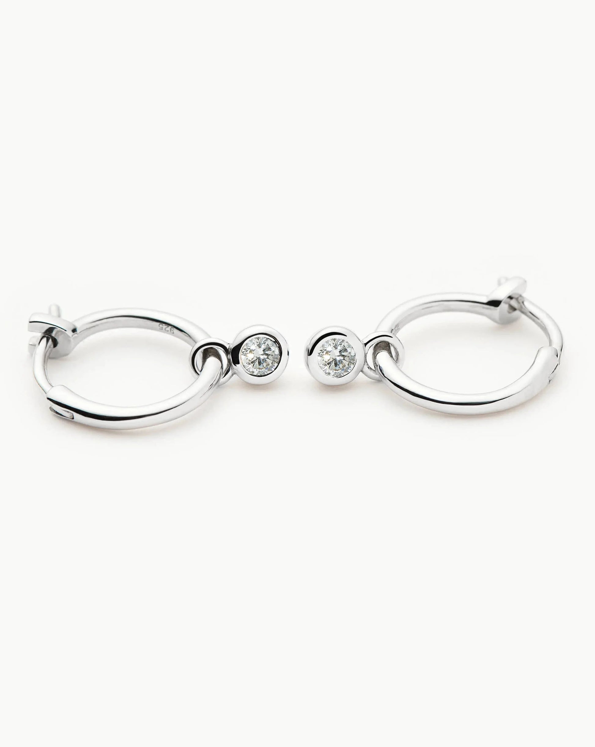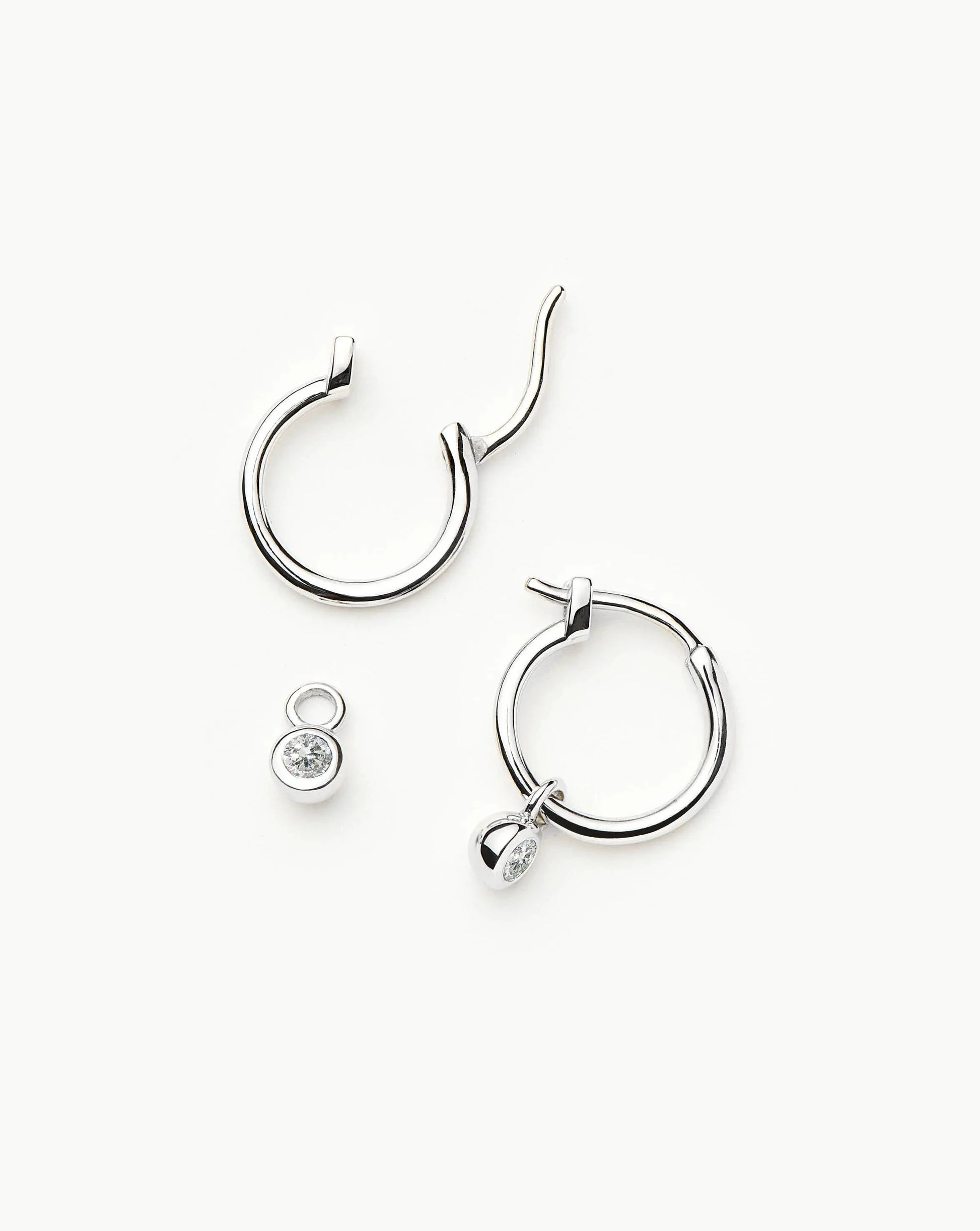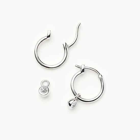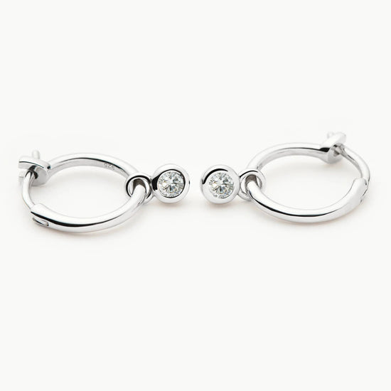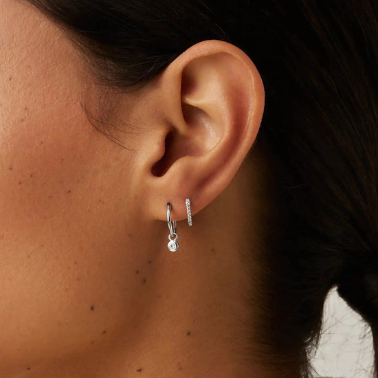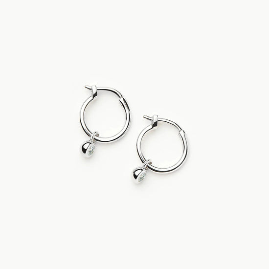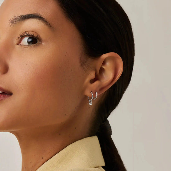 A new addition to our best selling Tennis Collection. These mini hoop earrings feature a drop charm crafted from faceted cubic zirconia. A timeless design for everyday wear or perfect for gifting.