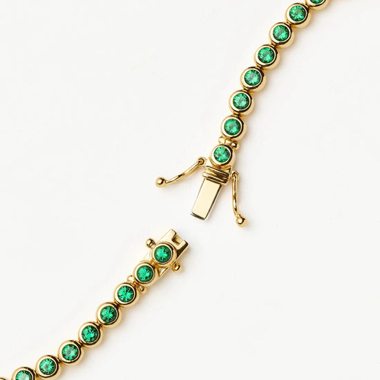 Tennis bracelets are a fixed length and can't be adjusted. Depending on your wrist size, we recommend sizing up.