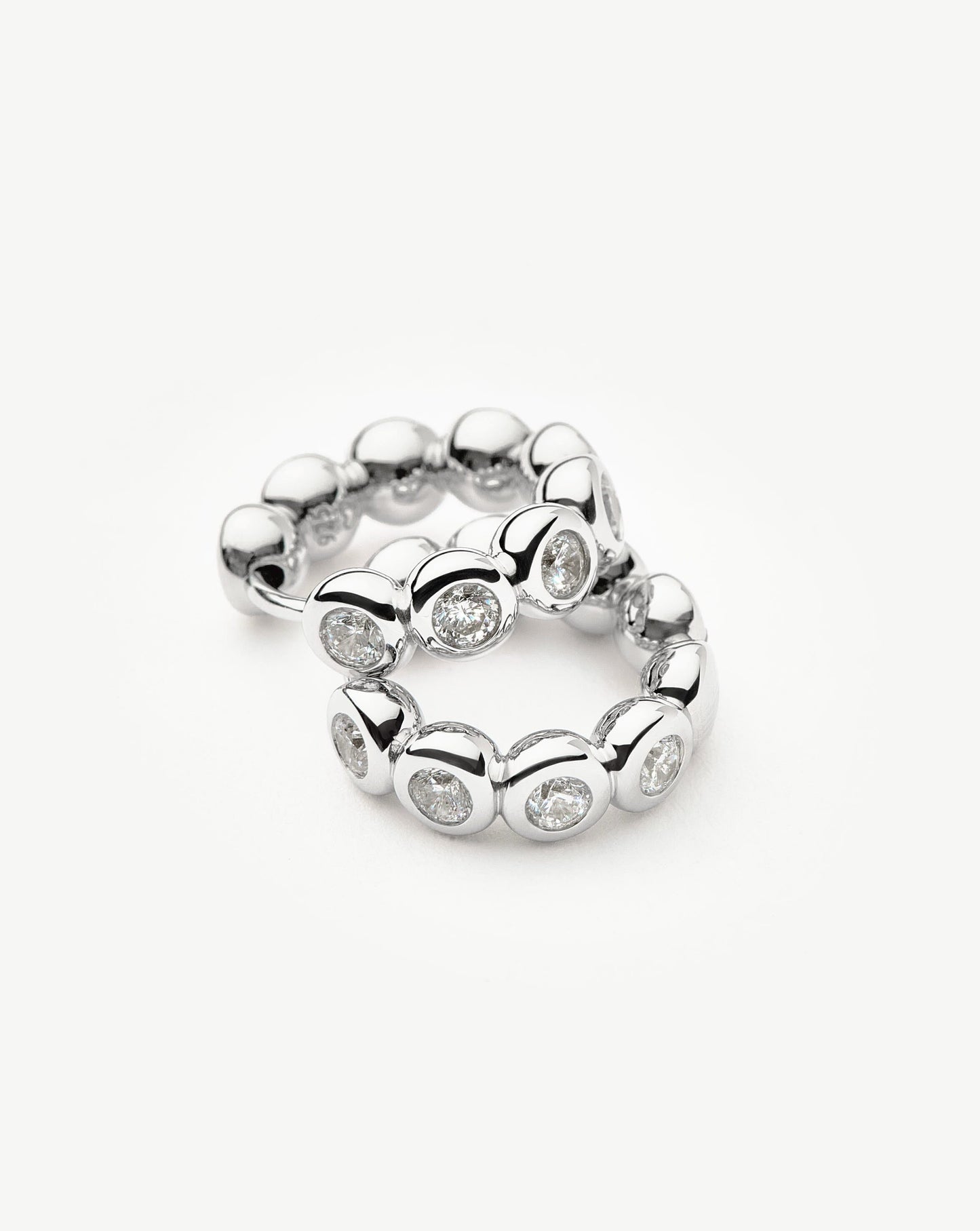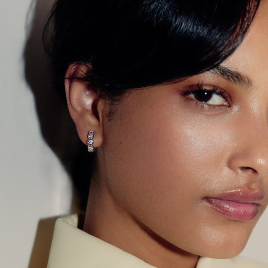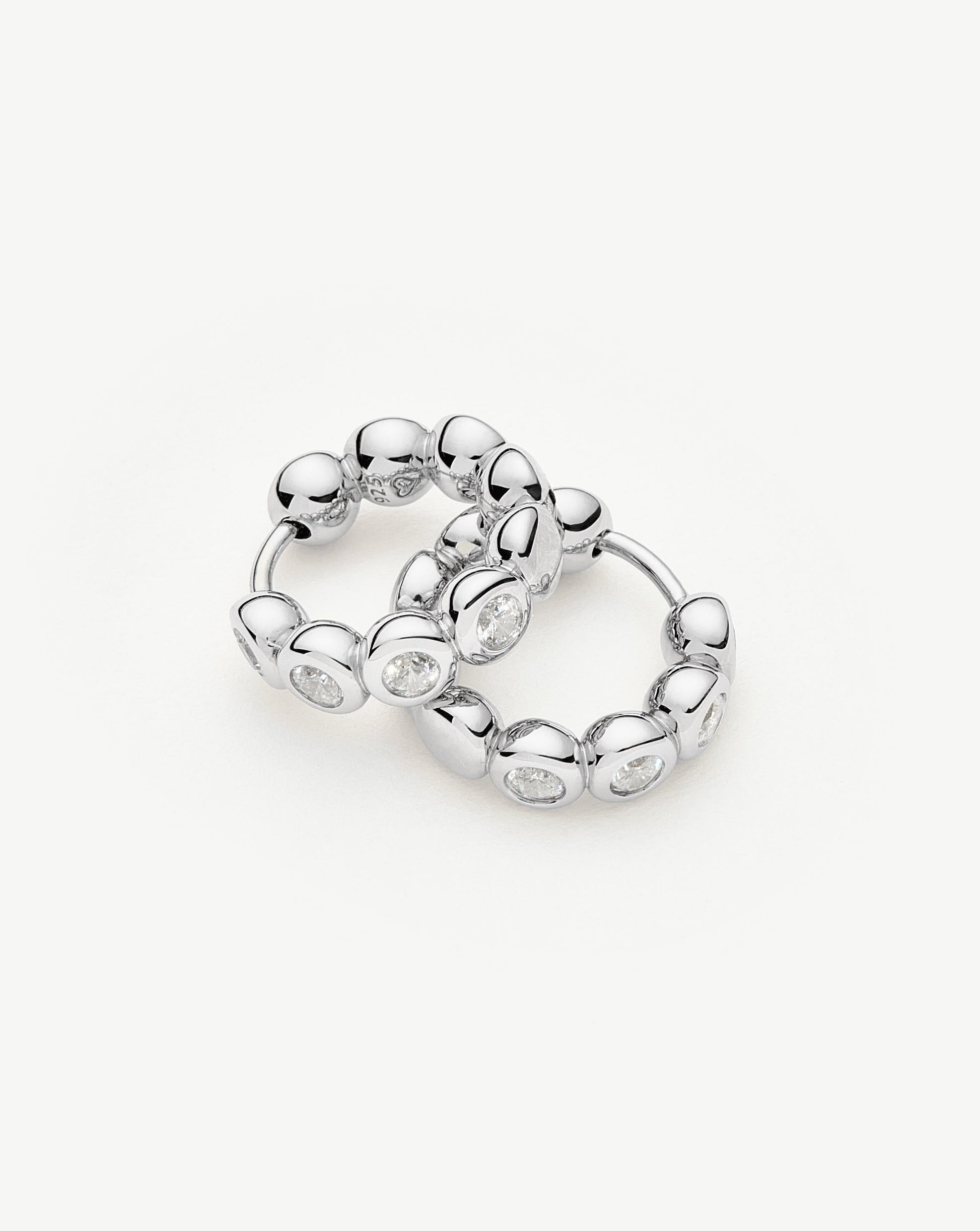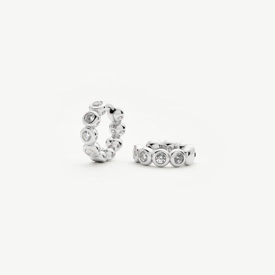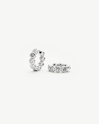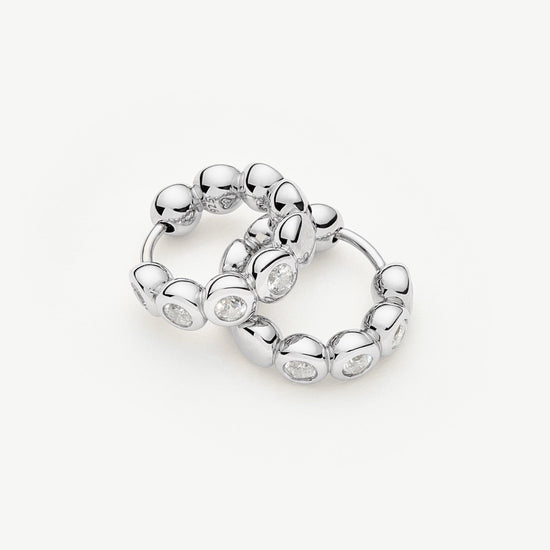 These classic small silver hoops feature beaded detailing, embellished with cubic zirconia. Wear solo or team with studs or a hoops for an instant ear stack.