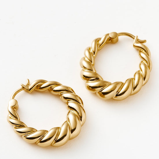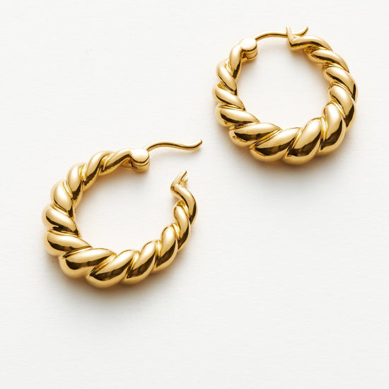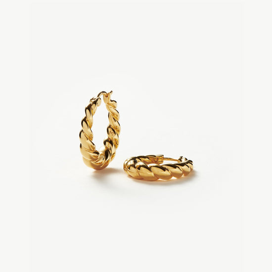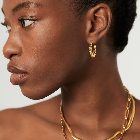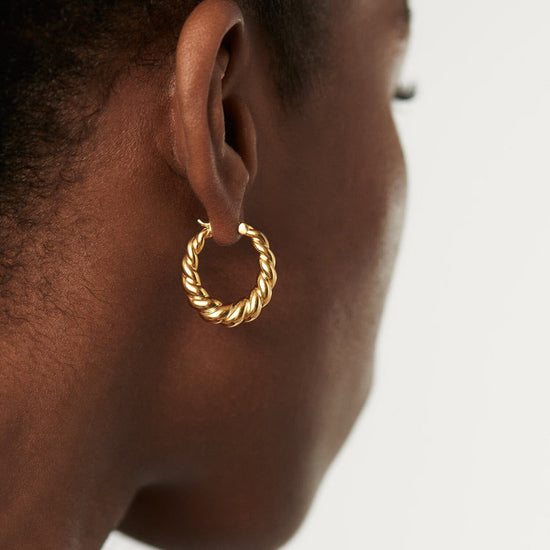 A medium-sized upgrade to our tidal mini hoops, these earrings feature a twisted tidal design inspired by rope detailing. Wear solo or style with studs and mini hoops for an instant statement ear stack.