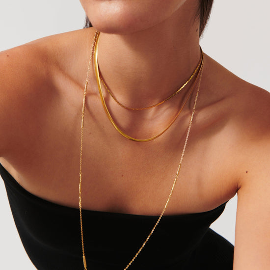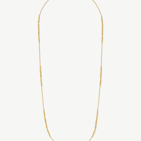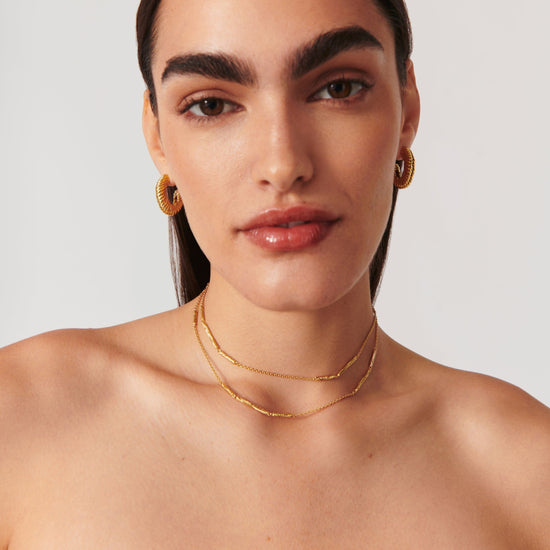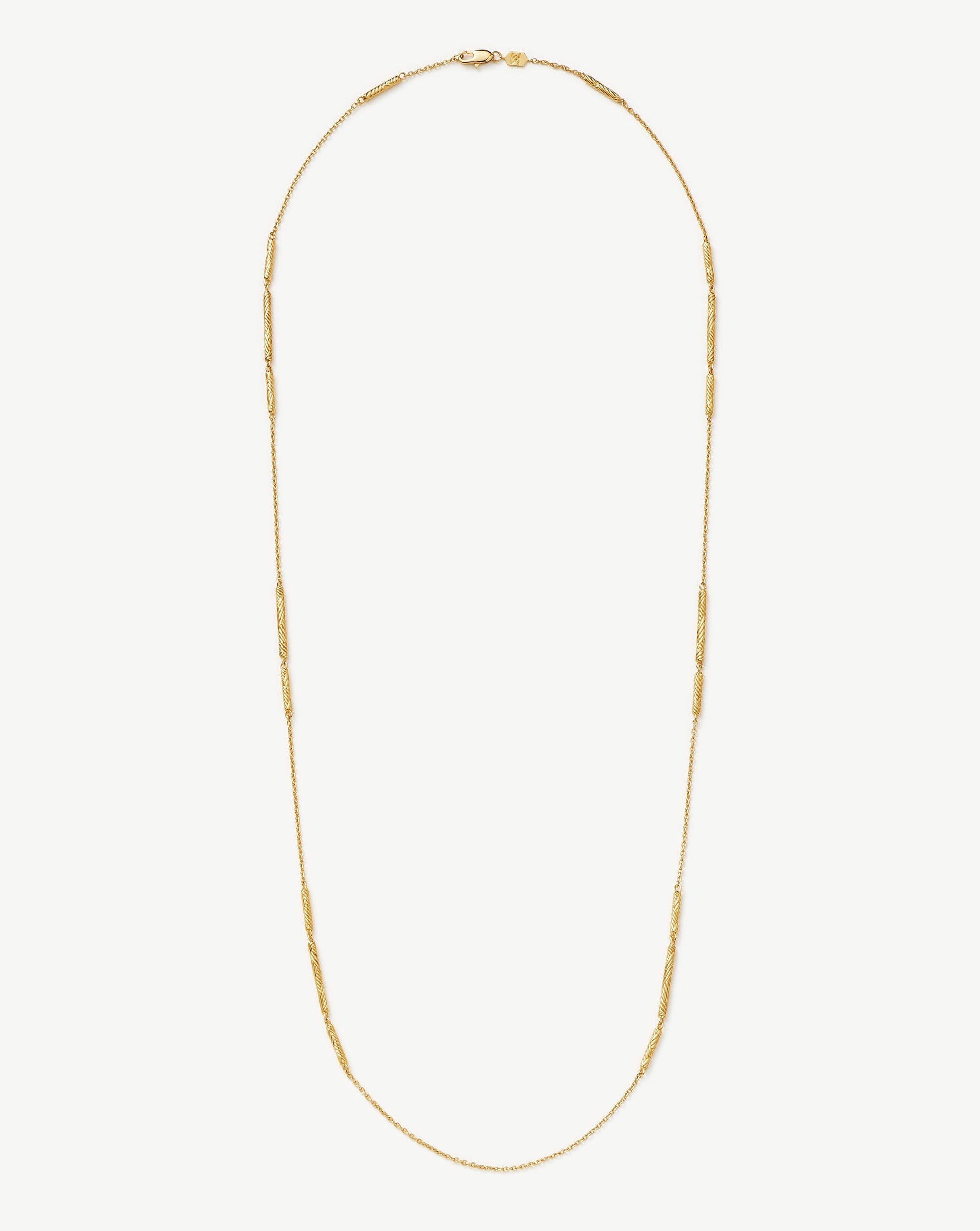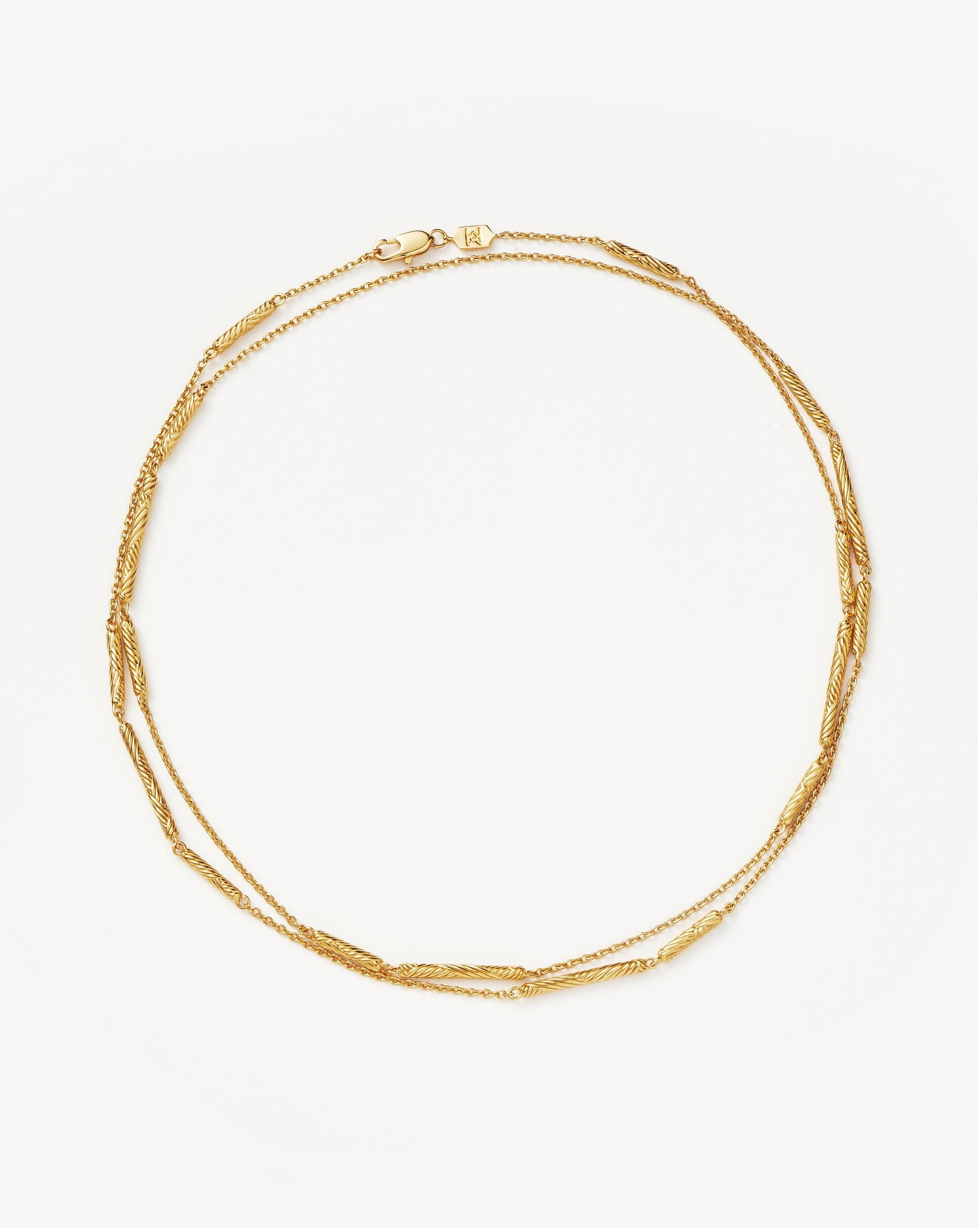 This everyday chain features bespoke tube links with a textured design, inspired by the ripples of the ocean. Style multiple ways as an extra long necklace, or wrapped around as a choker or instant layered look.