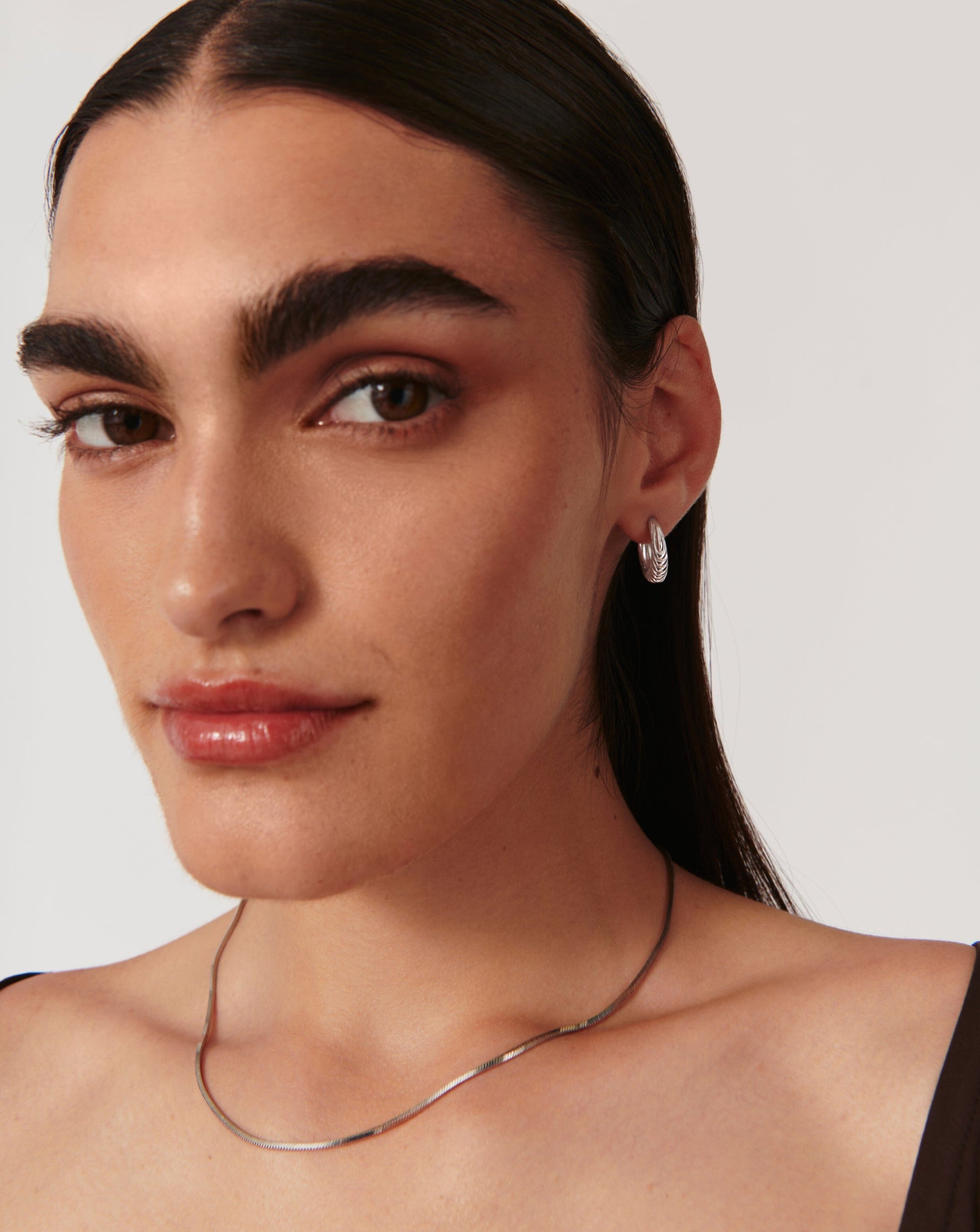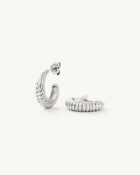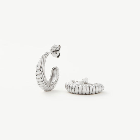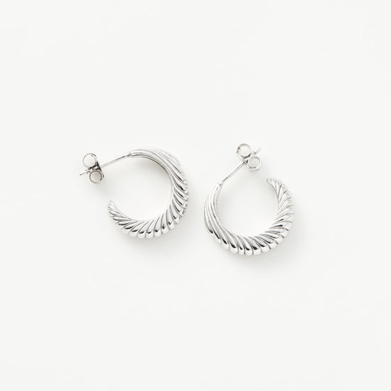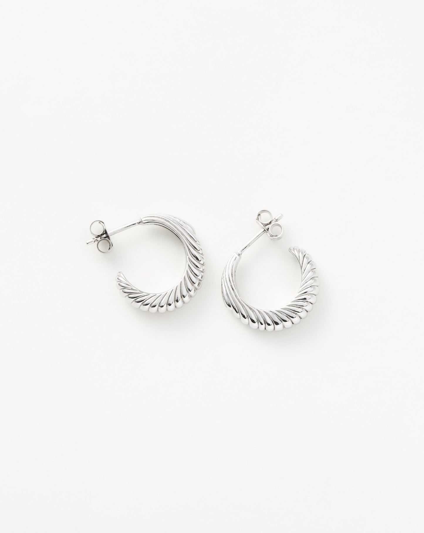 These everyday small hoops feature twisted ridge detailing and a tapered design, inspired by the ripples of the ocean. Create contrast in your ear stack by teaming with delicate huggies.